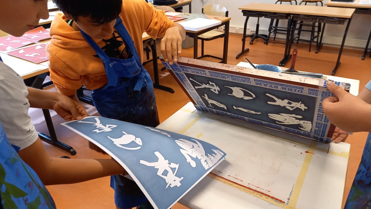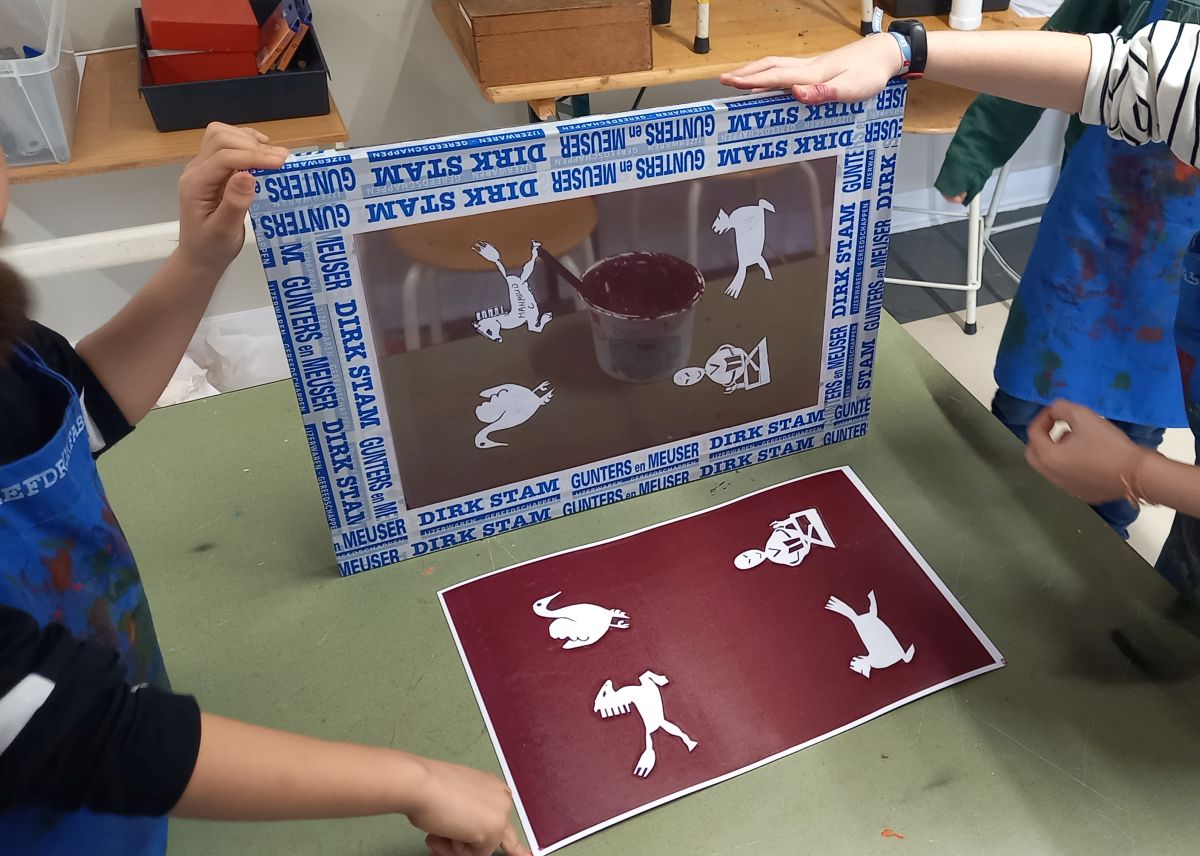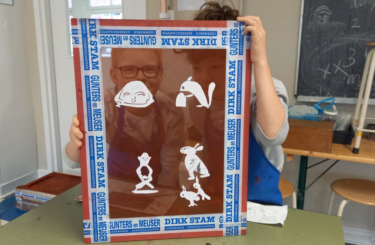 The Screen Printing Factory regularly screen prints ‘Teacher on the Street’ at schools in Amsterdam. On paper, but also on canvas. The works of art are often given a nice place in the school.